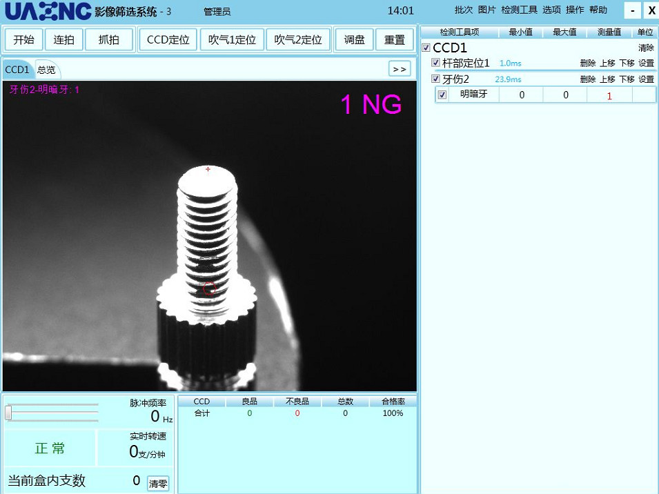 CCD1:對產品各臺階尺寸和螺牙底中外徑尺寸進行檢測,同時可以檢測尾桿變形。