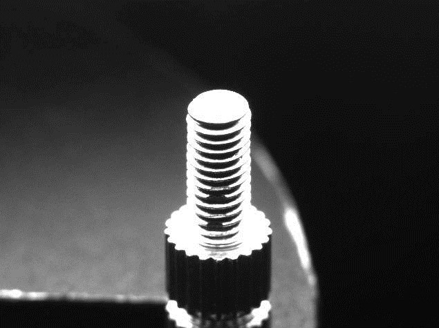 由于雙頭螺絲兩邊沒有頭部,無法能平穩的站立,所以我們采用分度盤式光學影像篩選機對產品進行檢測篩選。采用五個CCD工業相機: